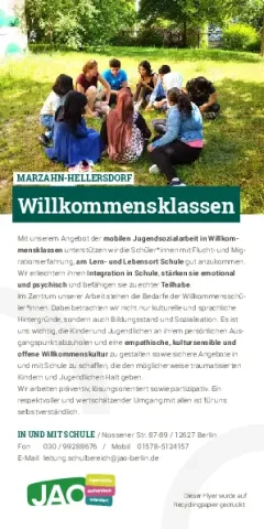 Wir setzen das Projekt Willkommensklassen im laufenden Schuljahr in Marzahn-Hellersdorf um.