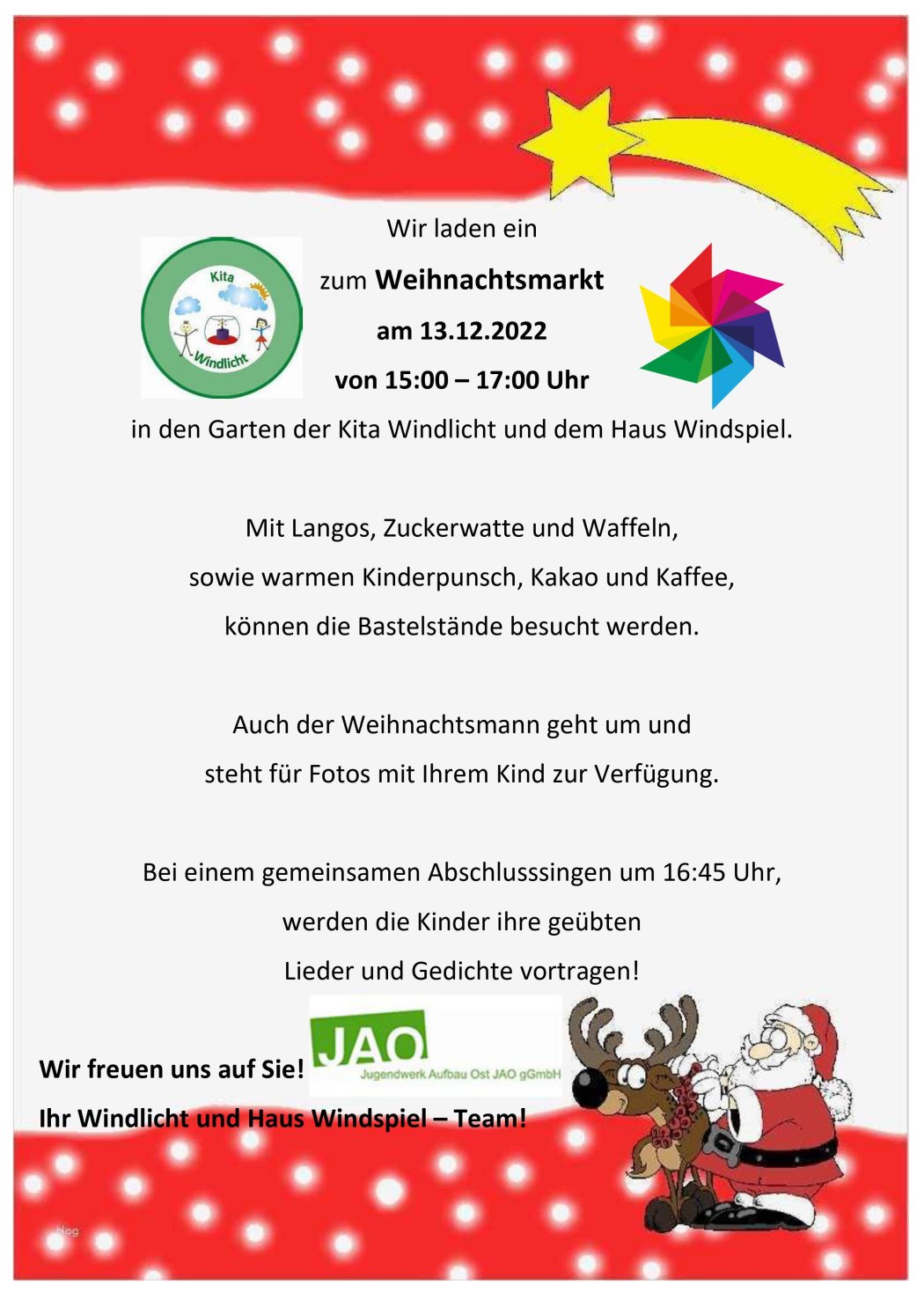Also, kommt vorbei und feiert mit - am 13.12., 15-17 Uhr im Garten der Kita "Windlicht".