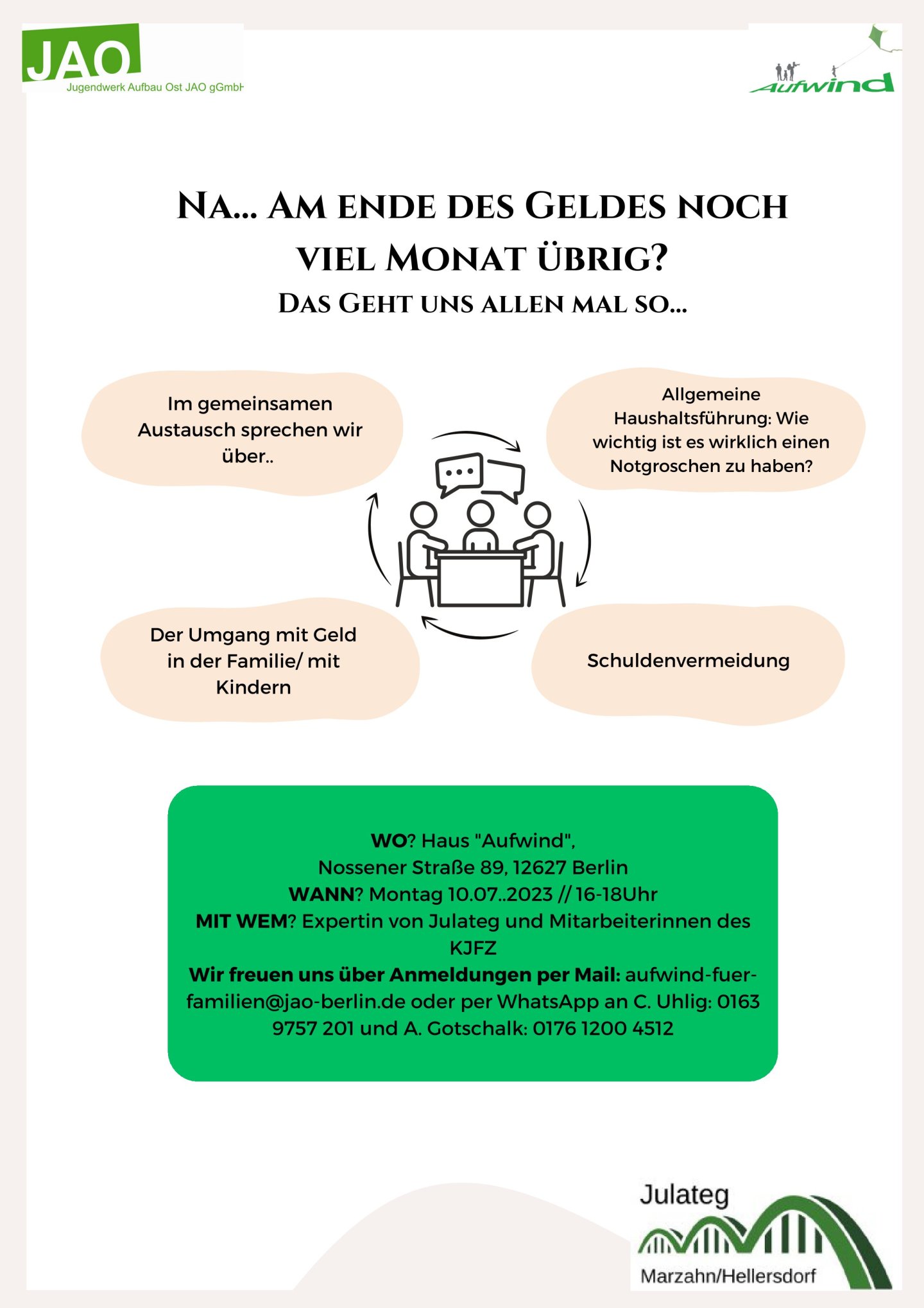 Wir freuen uns über Anmeldungen per E-Mail: aufwind-fuer-familien@jao-berlin.de oder per WhatsApp an C. Uhlig: 01639757 201 und A. Gotschalk: 0176 1200 4512