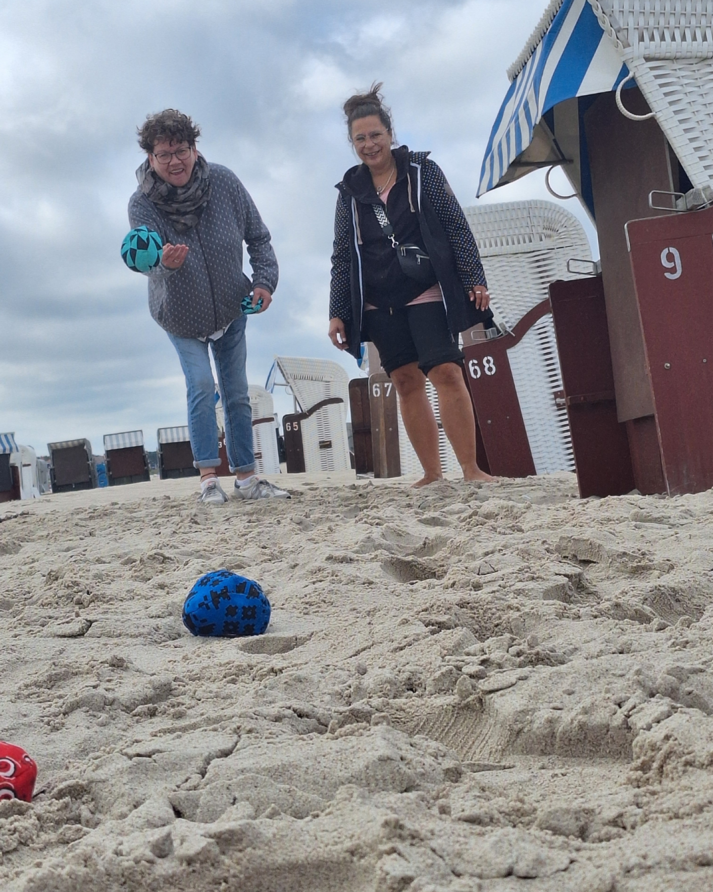 Teamspirit, Gesundheit und Bewegung – darum geht es in „Wir im Team“. Wir im Team ist neben den JAO-übergreifenden Gesundheitswochen und dem individuellen Gesundheitsbudget ein Angebot zur Gesundheitsvorsorge in JAO. Das Team des Hauses „Windspiel“ hat sich im Rahmen von „Wir im Team“ entschieden, nach Warnemünde zu fahren und beim Boulespielen und Spaziergängen am Strand sowie auf der Mole samt
