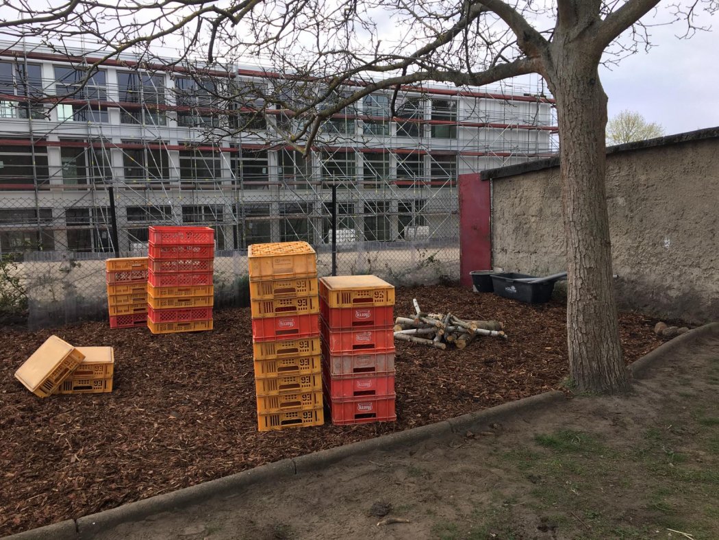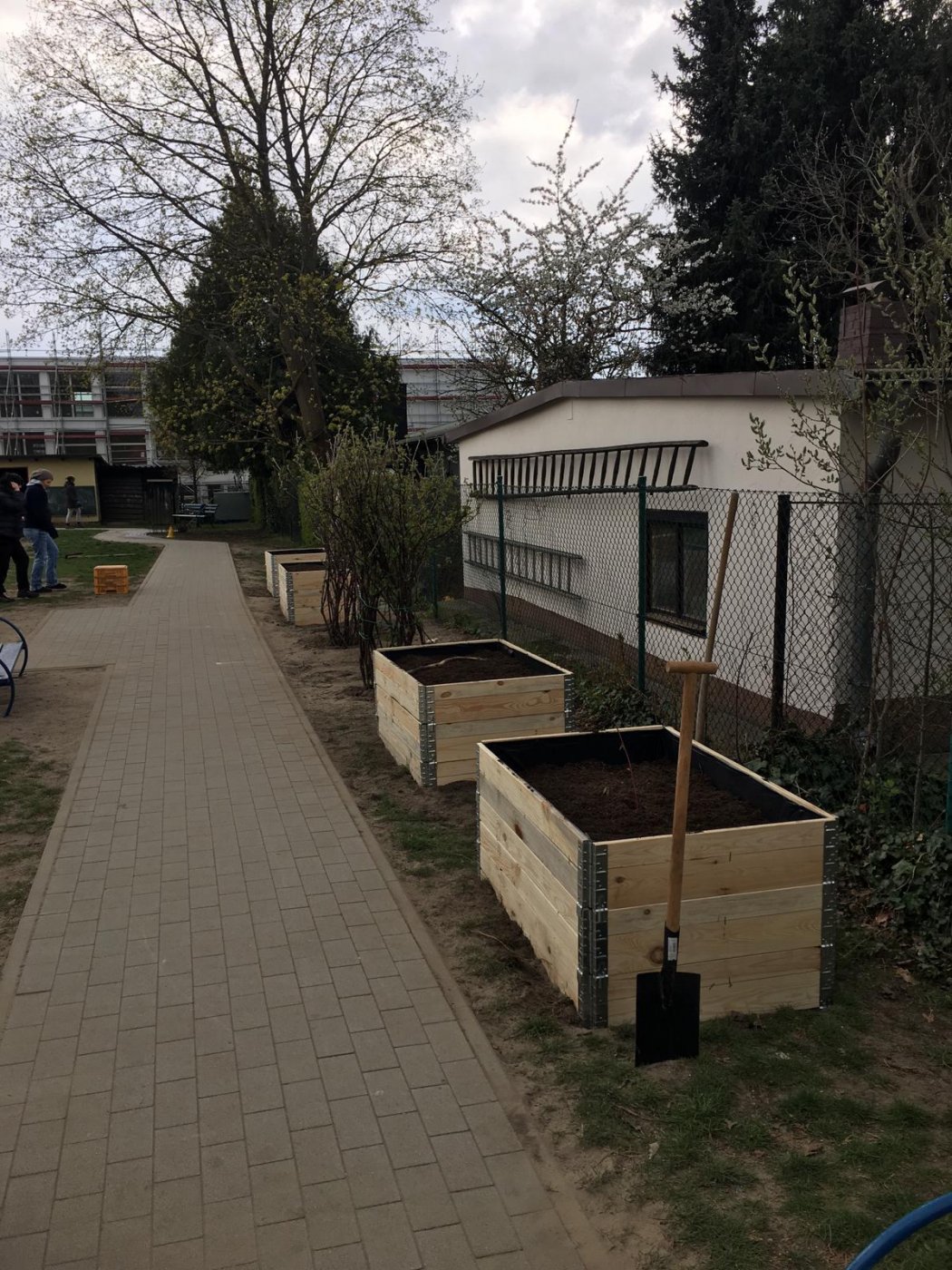 Es wurden die Beete aus dem Winterschlaf geholt, ein Weidenhäuschen gesetzt, Verkehrsschilder gemalt und aufgestellt. Unsere Väter haben im hinteren Teil des Gartens eine kleine Bewegungsbaustelle für die Kinder geschaffen. Unsere fast Schulkinder und ihre Eltern haben uns als Dankeschön vier Hochbeete geschenkt und sie auch gleich aufgebaut. Alle Materialien, die wir zum Frühjahrsputz brauchten haben die Eltern mitgebracht.