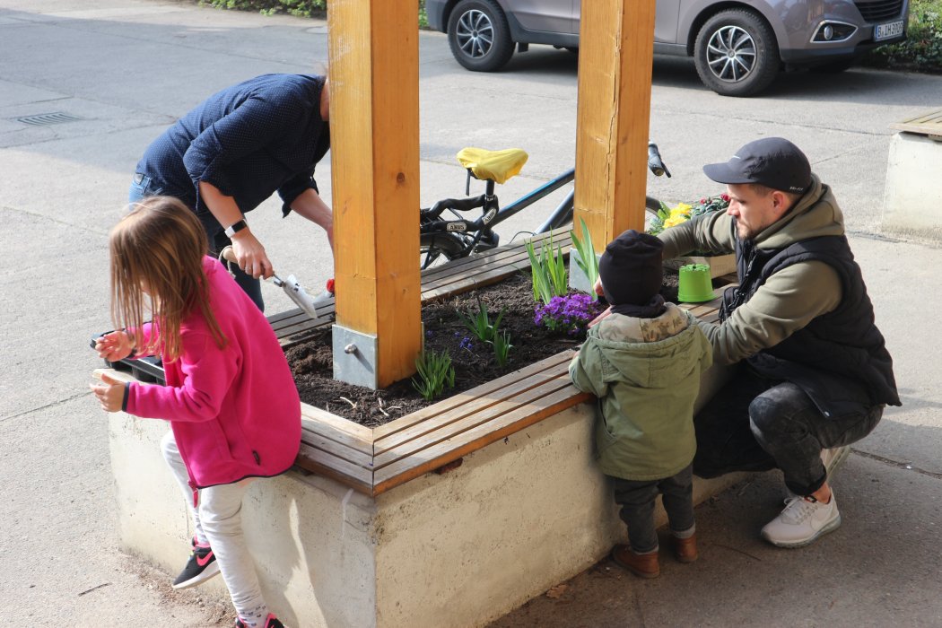 Auf den einzelnen Gruppenterrassen haben wir Blumen gepflanzt, Rasen gesät und die Beete in Ordnung gebracht. Auch im Eingangsbereich haben fleißige Helfer*innen die Blumenkästen mit mitgebrachten Blumen bepflanzt.