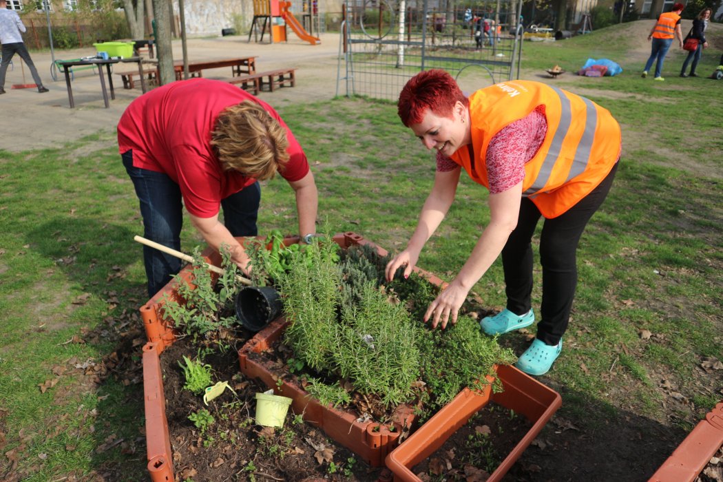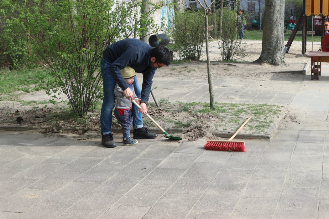 Engagierte Eltern, Kinder und Erzieher*innen haben viel geschafft und waren fleißig. Unterstützt wurden wir von den „Kehrenbürgern“ der BSR, die uns Gartengeräte, Handschuhe und Arbeitswesten bereitstellten.
