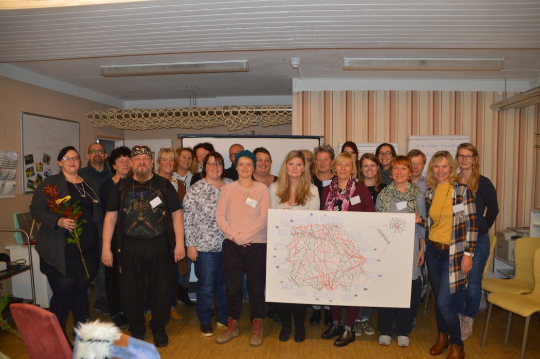 Mit einer Vernetzungsspinne, die symbolhaft zeigte, dass viele Fäden bereits gesponnen und ebenso viele neue Kontakte geknüpft werden wollen, bekräftigten die Teilnehmern*innen ihr Vorhaben.