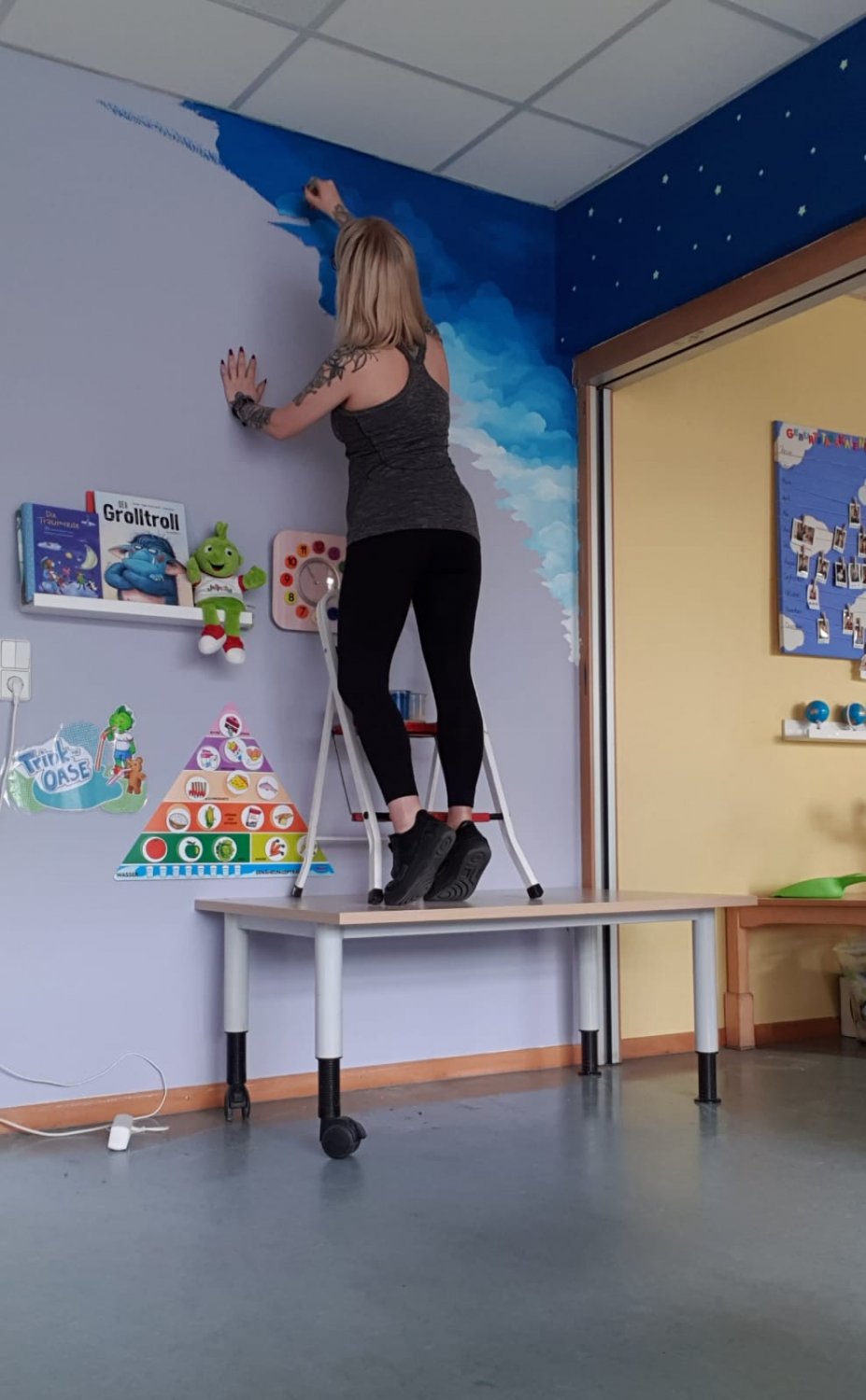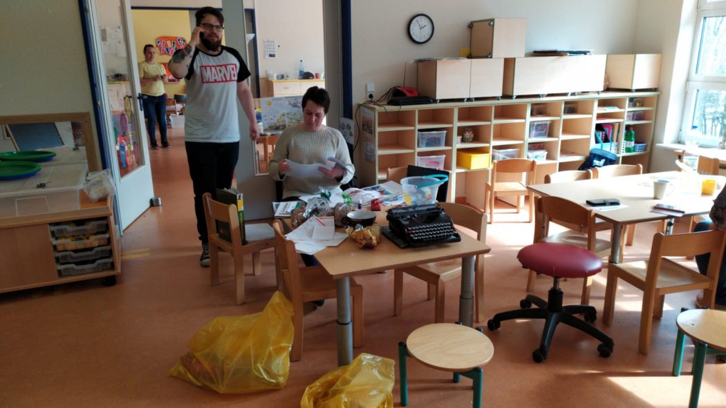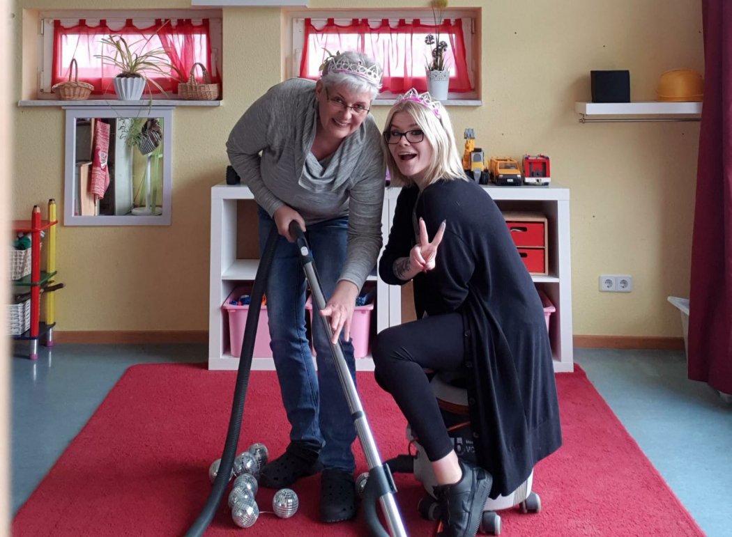 seit 3 Wochen ist unsere Kita in der Corona Schließzeit. Ca. 20 -25 Kinder sind bei uns. Wir malen, basteln, bauen ein Kartonhaus, machen eine Kostümparty, singen, lesen, erzählen Geschichten und sind ganz viel im Garten an der frischen Luft. Wir erfahren viel über das Virus, waschen uns ganz oft die Hände, mischen uns selber eine Seife, die den doofen Virus abwäscht und unsere Hände nicht vertrocknet. Aber was ist sonst so los? Die Erzieher*innen haben schon 8 Räume gemalert, aufgeräumt, umgebaut, umgeräumt, alles ganz doll geputzt, den Pausenraum neu gemacht, Konzepte und Unterlagen sortiert und auf einen aktuellen Stand gebracht. Kein Tag war bisher langweilig, alle sind fleißig und wir machen es uns trotz unruhiger Zeit schön....für unsere Kinder und unsere Kita passen wir gegenseitig gut auf uns auf und freuen uns, wenn wir uns alle in unserem Abenteuerland gesund und fröhlich wiedersehen.