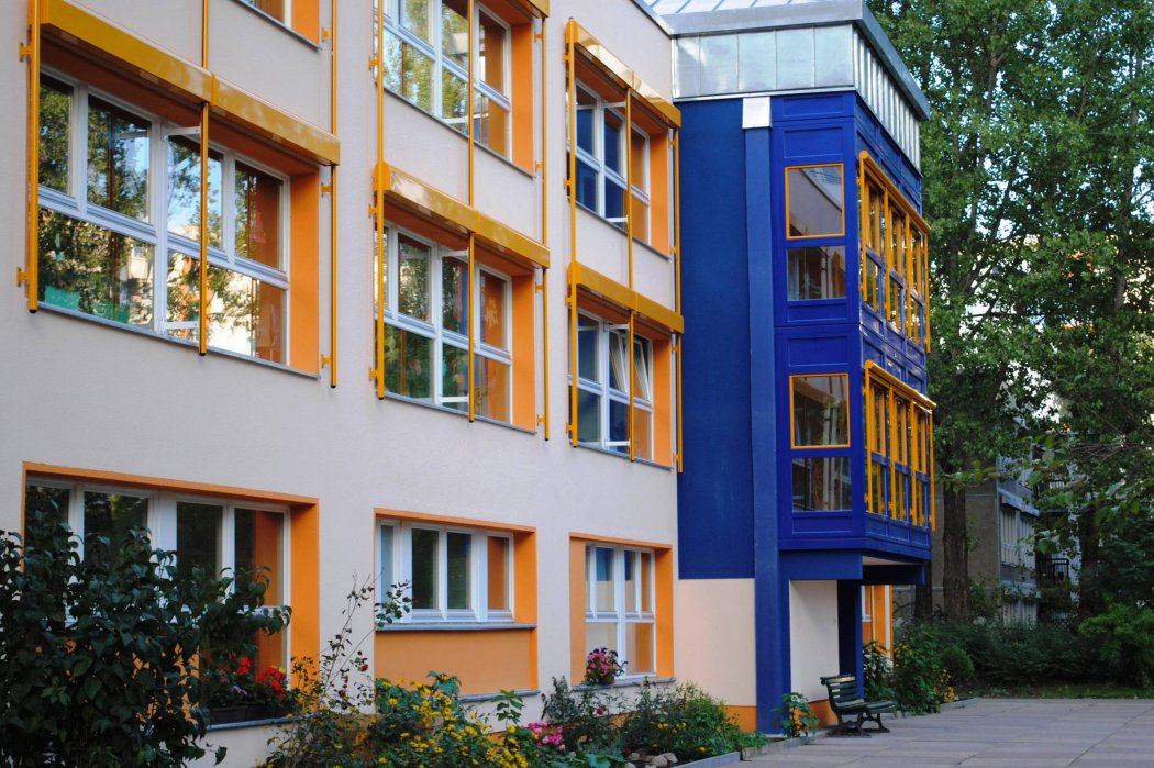 Unsere Kita mit ihrem großzügigen Garten wurde 1979 eröffnet und in den Jahren 2009/10 energetisch saniert. Verglaste Loggien fungieren als Atelier- und Bewegungsräume für die Jüngsten sowie als Entspannungsorte. Neben altersgerecht und anregungsreich eingerichteten Gruppenräumen gibt es im Haus Therapie- und Entspannungsräume, eine Sauna, eine Keramikwerkstatt und einen Sportraum. Unser Haus ist barrierefrei.