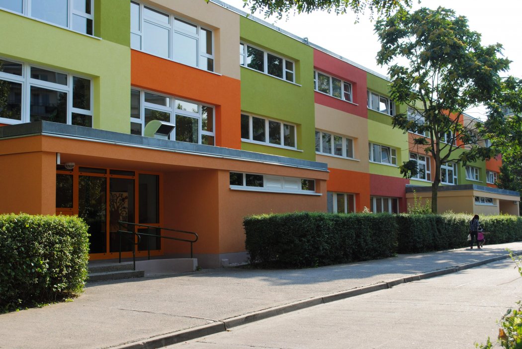 In unserem Haus „Farbklecks“ befinden sich die Kitas „Rabennest“ und „Jahresuhr“. Das Gebäude ist barrierefrei und wurde 2010/11 energetisch saniert und modernisiert. Ein großer Garten verbindet beide Einrichtungen und bietet viel Raum zum Spielen und Entdecken.